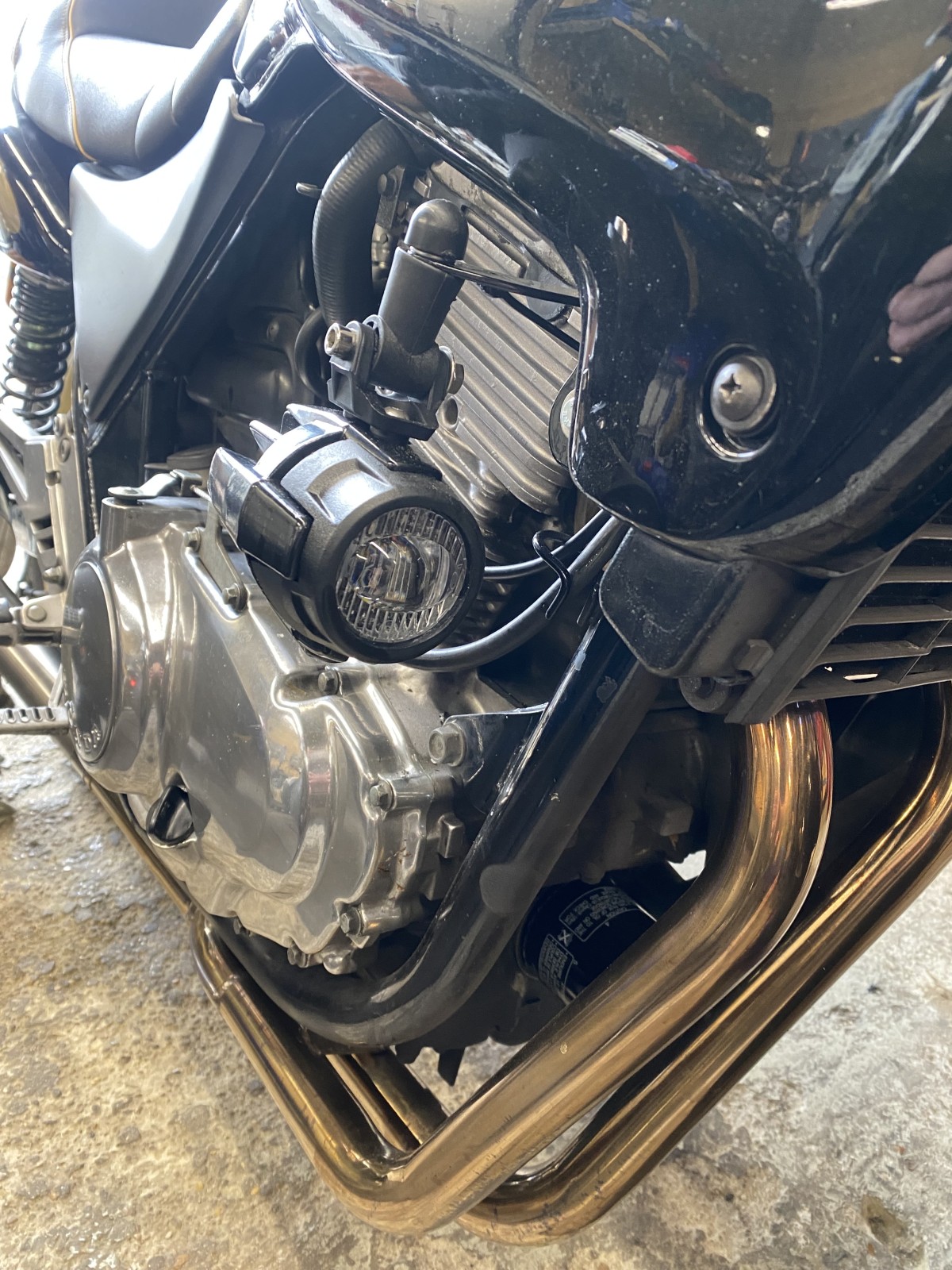 Nous avons également repeint avec de la peinture époxy les poignées qui servent au passager ainsi que les supports pour les antibrouillards que nous avons confectionné nous-même pour cette moto.